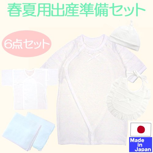 福袋 春夏用 出産準備用品6点セット 日本製 帽子 スタイ ツーウェイオール ガーゼ短肌着 ガーゼハンカチ2枚