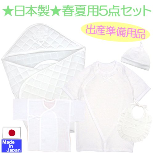 福袋 春夏用 出産準備用品5点セット 日本製 ツーウェイオール スタイ 帽子 ガーゼ短肌着 アフガン