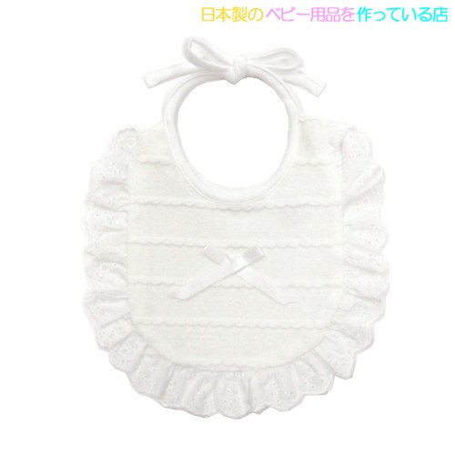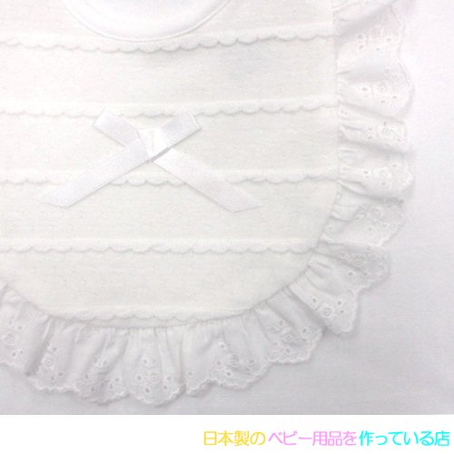 - 帽子×1 ●素材 天竺ジャガード 綿100% レース付スタイ×1 ●素材 表 天竺 綿100% 裏 ブロード 綿100% レース部分 綿100%