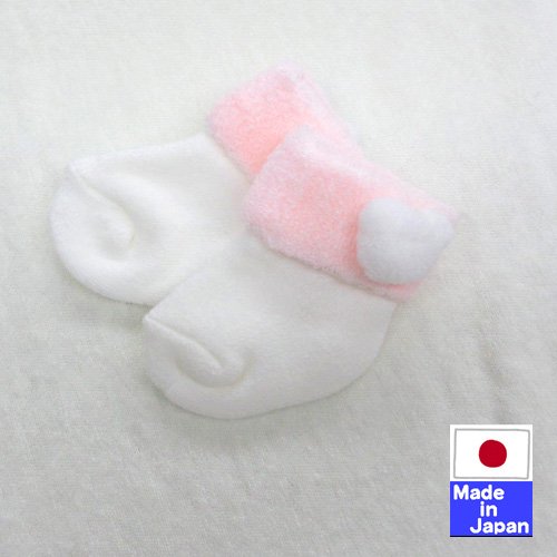 ベビーソックス くまさんボンテン (ピンク) 新生児7~9cm 日本製