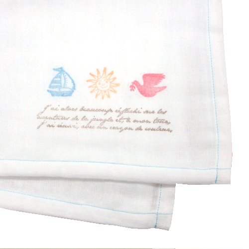 ★日本製★大判ガーゼマルチケット ワンポイントプリント(ブルー) 洗うほどやわらかくなる3重織ガーゼマルチケット 115cm×115cm 綿100%