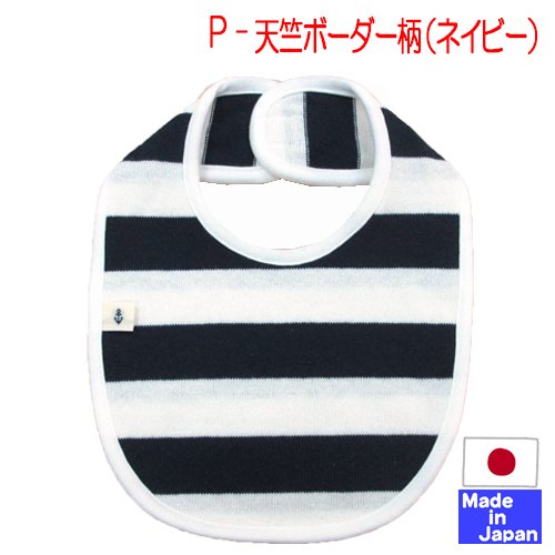 ★日本製★スタイ単品色々 U型 新生児 (P 天竺ボーダー柄 ネイビー)