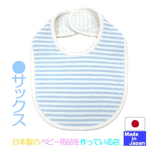 ☆日本製☆接結ニットスタイ (ボーダー柄・サックス) 新生児フリーサイズ マジックテープタイプ