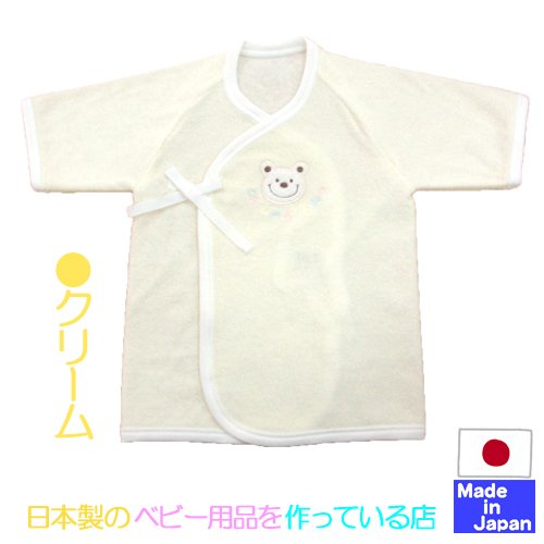 ☆日本製☆パイル短肌着 (KUMASANN、USAKO、LIOMKUM)クリーム(くま) 新生児 サイズ50-60cm 綿100%