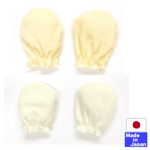 ★日本製★ 新生児 ミトン2P (フライスボーダークリーム+パイルクリーム) 綿100%