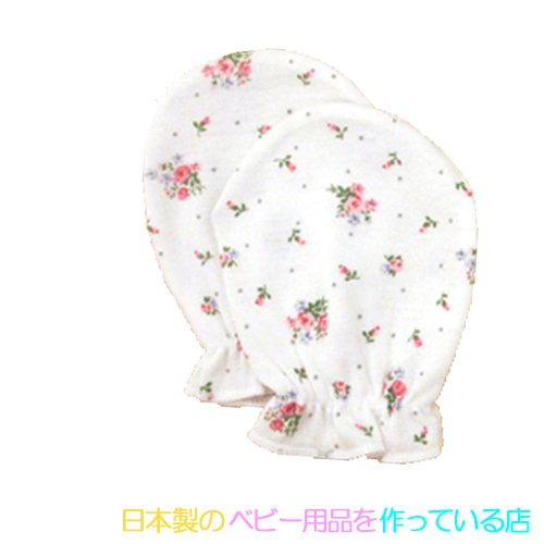 ☆日本製☆新生児用ミトン1組 フライス(バラの花柄・オフホワイト) 新生児フリーサイズ 綿100%