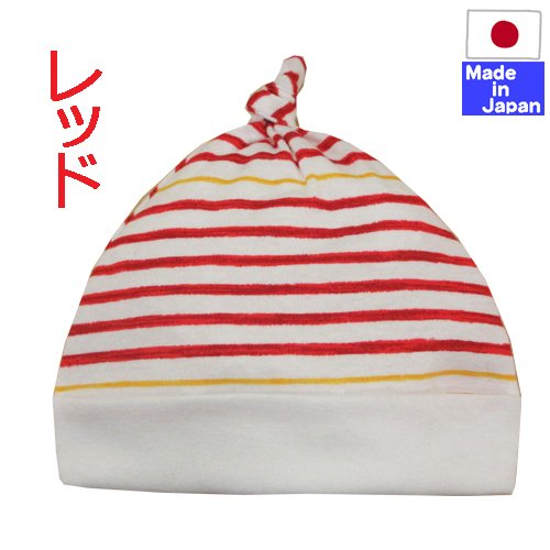 クレヨンボーダー新生児ベビー帽子 (レッド) 綿100%