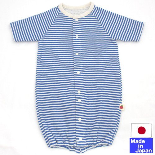 ◇日本製◇ やわらかパイル長袖ツーウェイオール(ぞうさんとりんご)新生児50-60cm オールシーズン (サックス)