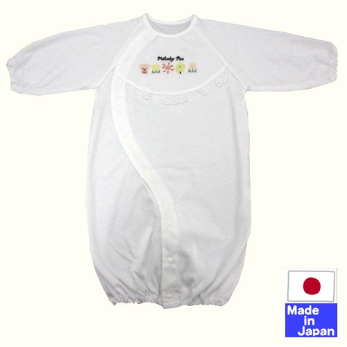 レース付スムース ツーウェイオール 日本製 サイズ50-70cm MelodyPoo 綿100% 新生児