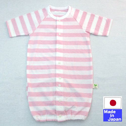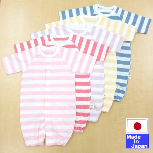 やわらか接結ニット七分袖ツーウェイオール(ボーダー)50-60cm 日本製 (グレー)
