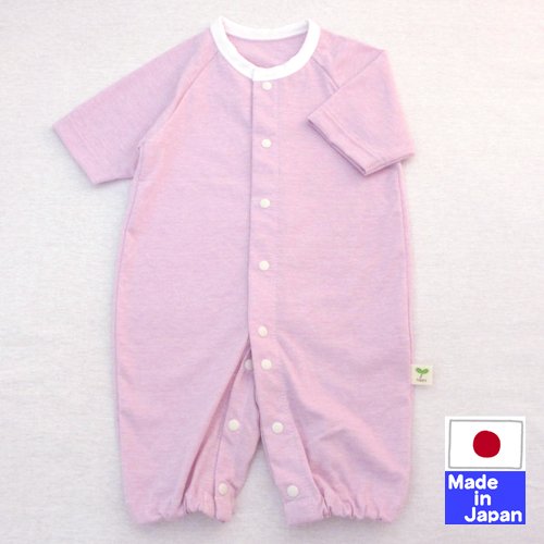 やわらか接結ニット七分袖ツーウェイオール(ボーダー)50-60cm 日本製 (サックス)