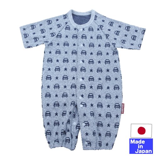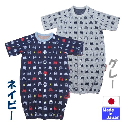 ★日本製★ やわらかスムース七分袖ツーウェイオール(ヨット柄) 綿100% カバーオール (アイボリー)