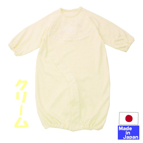 ★日本製★ レース付スムース長袖ツーウェイオール(くま帽子・クリーム) 新生児50-70cm オールシーズン