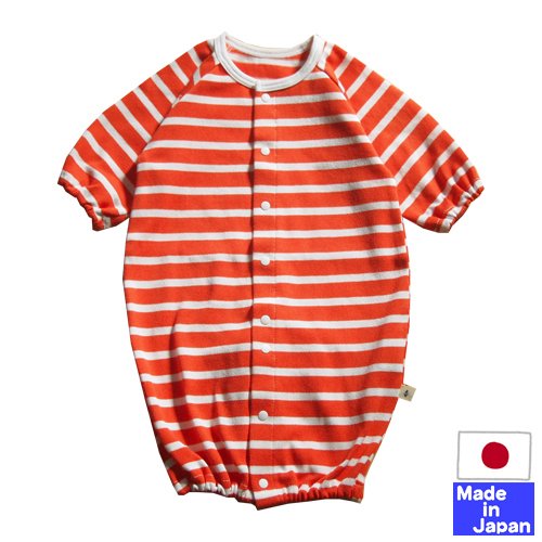 やわらか接結ニット七分袖ツーウェイオール(ボーダー)50-60cm 日本製 (グレー)