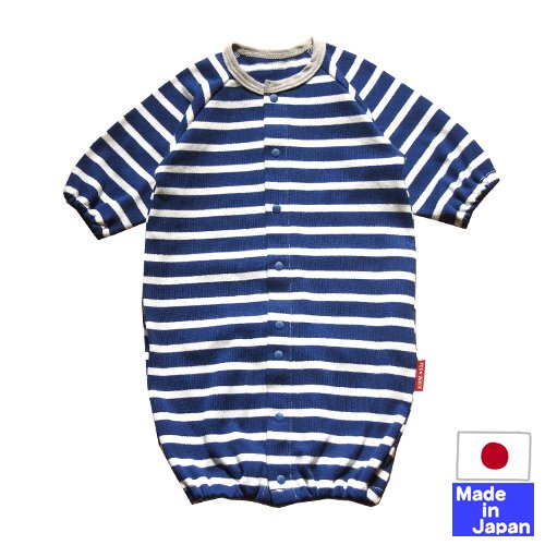 やわらか接結ニット七分袖ツーウェイオール(ボーダー)50-60cm 日本製 (グレー)