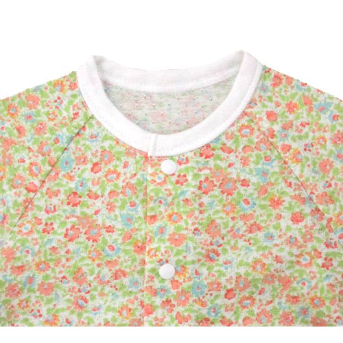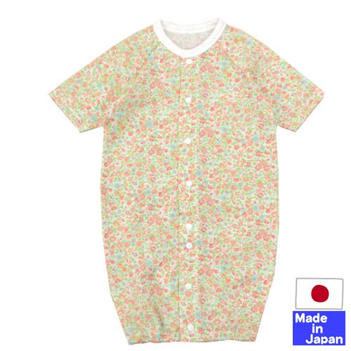 ★日本製★春・夏向け 花柄プリント天竺七分袖ツーウェイオール (G 白地×グリーンリーフ) サイズ50-60cm