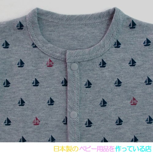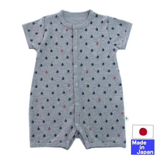 ★日本製★ マルチ水玉プリント半袖前開ロンパース (70-80, B 白地×ブルー系) 綿 100%