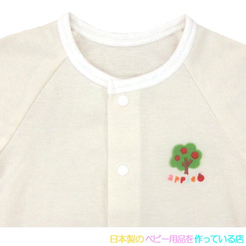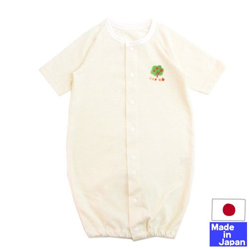 ★日本製★天竺七分袖ツーウェイオール(りんごの木・アイボリー) 綿100% サイズ50-60cm