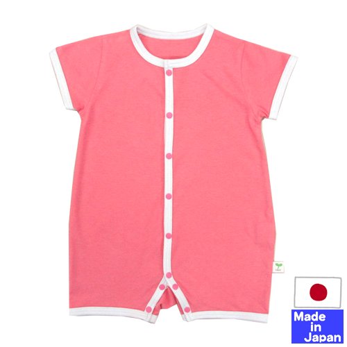 ★日本製★やわらかシャーリング天竺 半袖前開ロンパース(70-80cm・オレンジ)ボーダー 新生児 ショートオール