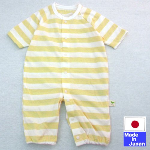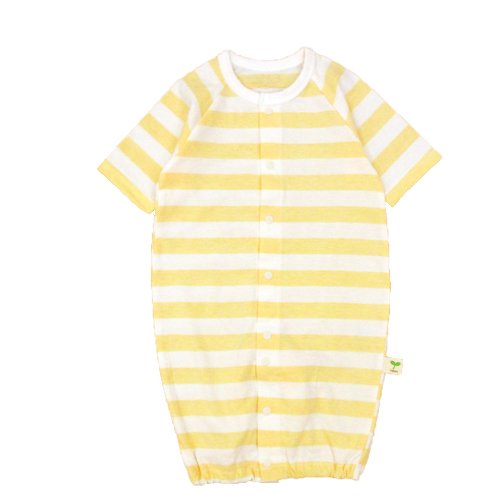 天竺七分袖ツーウェイオール ボーダー 50-60cm 日本製 綿100% (イエロー×ホワイト)