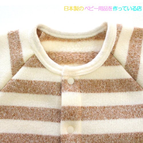 秋・冬向けのあったか裏ボアフリースボーダー (ブラウン) ツーウェイオール 日本製 サイズ50-60cm
