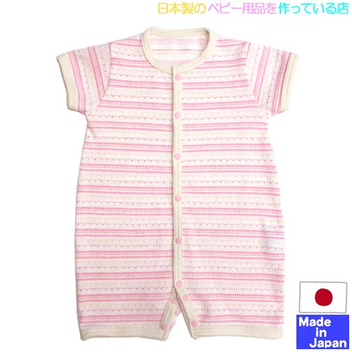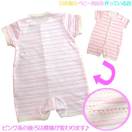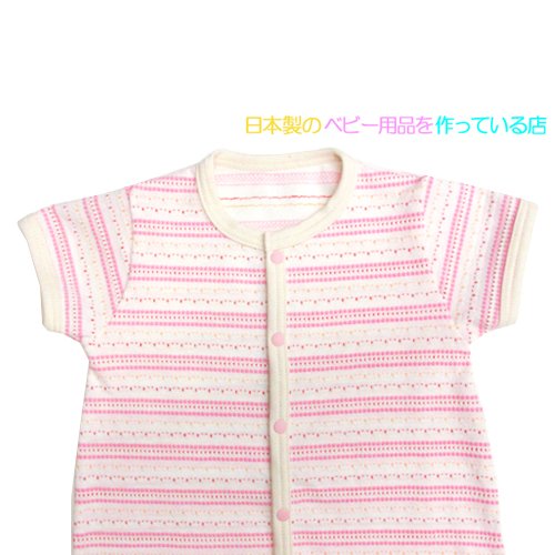 ★日本製★先染め天竺ボーダー 半袖前開ロンパース(70-80cm, ピンク系) 綿100% サイズ60-70/70-80cm