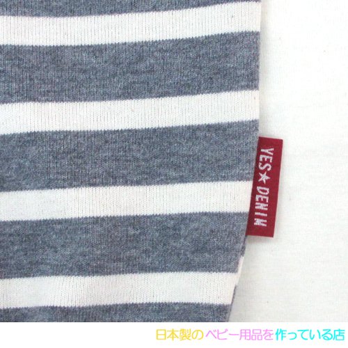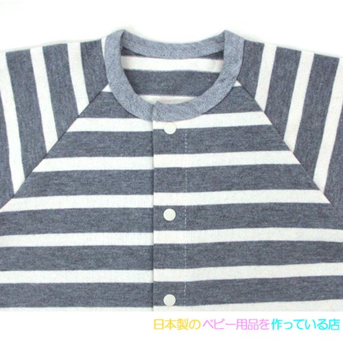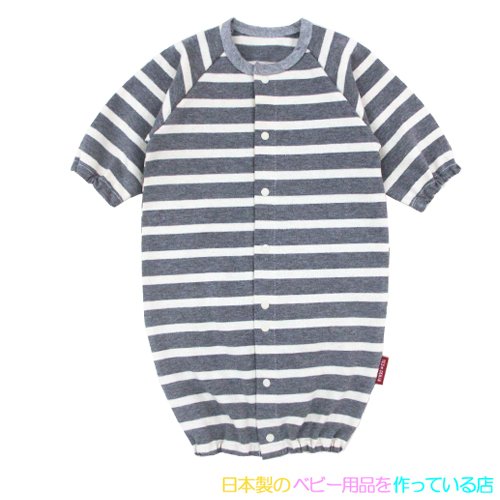 【余ったフランスの生地で作りました】ボーダー長袖ツーウェイオール (グレー×オフホワイト) 綿100 サイズ50-60cm しましま模様