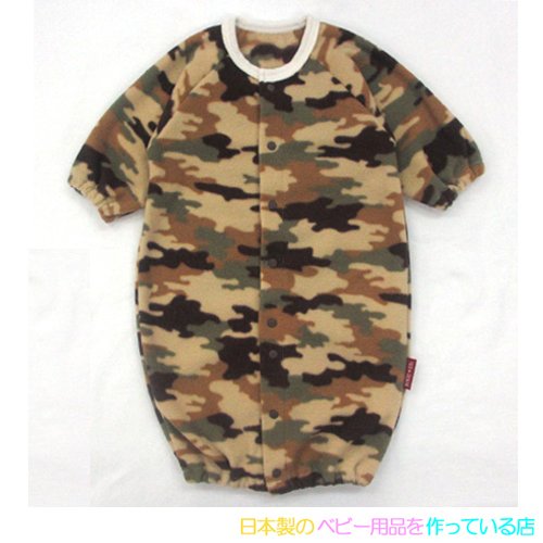 ★日本製★あったかフリースツーウェイオール 新生児用(ベージュ) 迷彩柄 日本製 サイズ50-60cm
