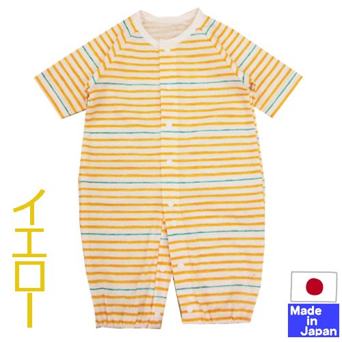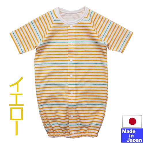 ★日本製★クレヨンボーダー七分袖ツーウェイオール 50-60cm  綿100%  (イエロー)