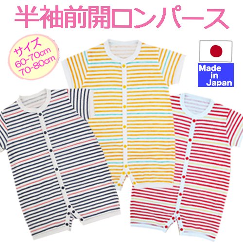 ★日本製★ 半袖前開ロンパース (ヨット柄・60-70cm・アイボリー) 綿100% サイズ60-70/70-80cm