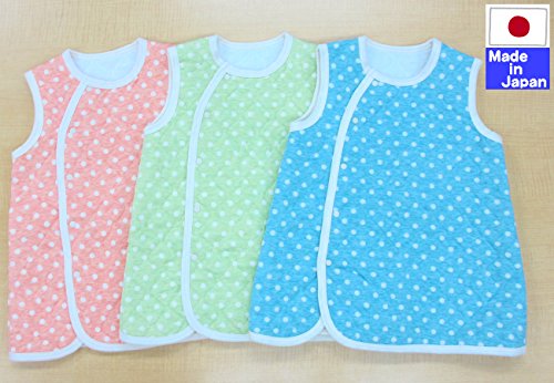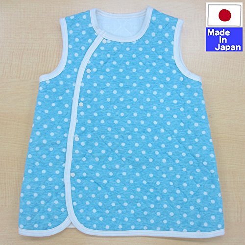 スリーパー にもなる便利な水玉柄ベビーキルト ロングベスト 綿100% 日本製 (ブルー)