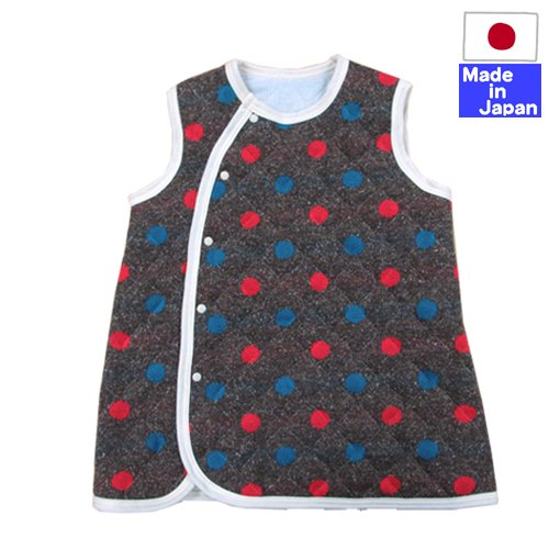 ★日本製★あったか水玉柄キルトロングベスト (ブラウン) ベストにもスリーパーにもなります
