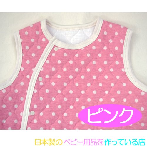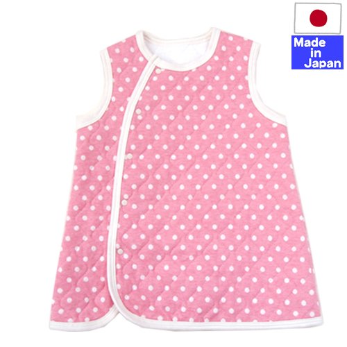 ベストにもスリーパーにもなる便利な水玉柄キルトロングベスト 日本製 (ピンク)