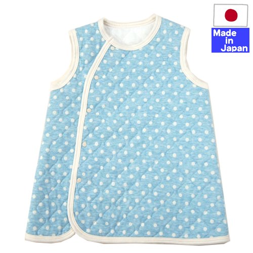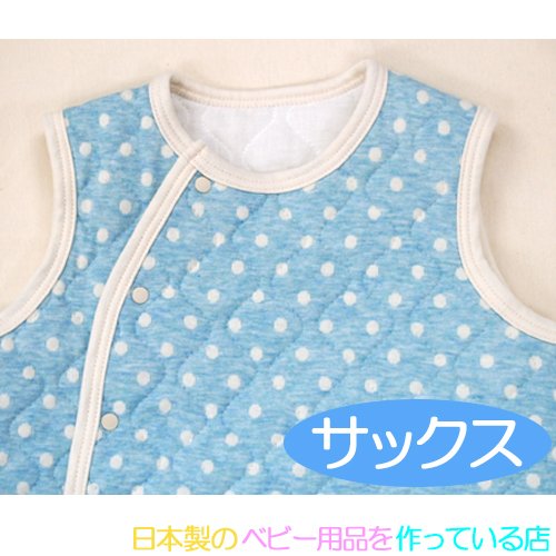 ベストにもスリーパーにもなる便利な水玉柄キルトロングベスト 日本製 (サックス)
