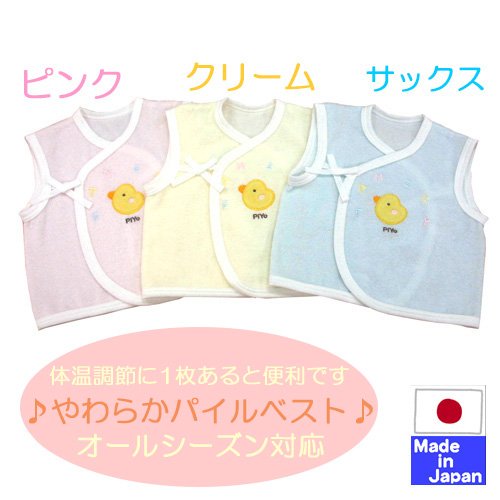 ★日本製★やわらかニットキルトベスト(KUMASAN、USAKO、LIONKUN、HIYOKO) クリーム(くま) 新生児 サイズ50-70cm