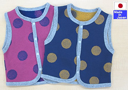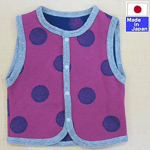 ★日本製★ドット柄クマワンポイント キルトベスト 新生児(50-70)ベージュ