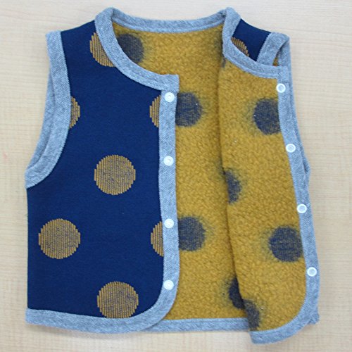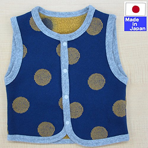 ★日本製★ベビー用あったか裏ボアベスト サイズ50-70cm  (ネイビー×イエロードット)