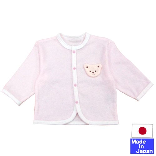 パイルカーディガン(白いクマ ワンポイント付・ピンク) サイズ50-60cm 綿100% 日本製