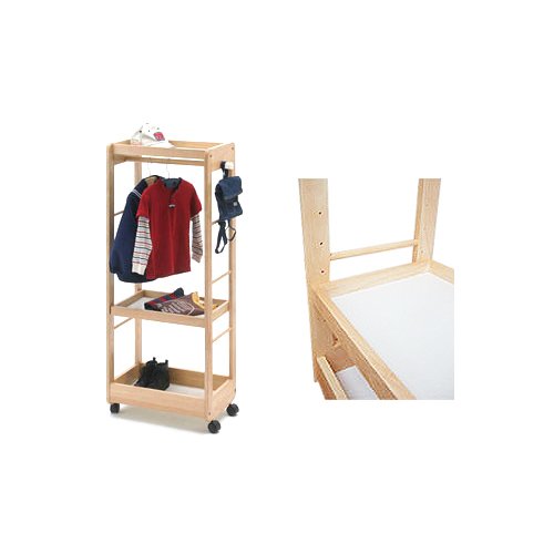子供服や鞄をかけることのできるポール付きの子供家具の収納棚です。