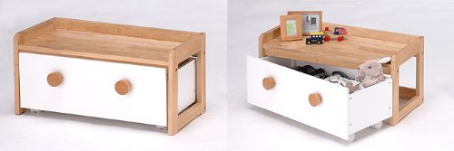 内寸:幅62.5cm奥行24.5cmのBOXには、おもちゃや衣類を収納できます。キャスターと大きな取手付きで、小さなお子様でも簡単に移動でき、お片づけの習慣にも役立ちます。使わない時はテーブル下にスッポリと収納できスペースを取りません。