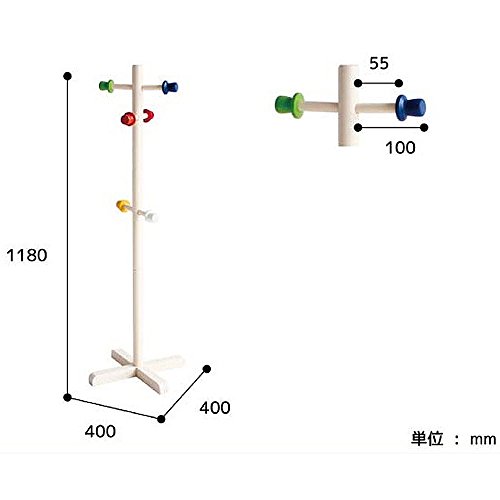 ●【サイズ】●W400×D400×H1180(mm)●【材質】●天然木(ラバーウッド材)●【耐荷重】●各フック:約1.0kg●【その他】●ラッカー塗装●ベトナム製●組立品