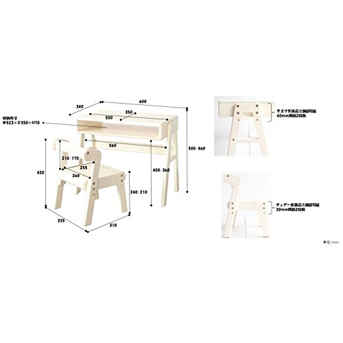 - [本体サイズ] サイズ:デスク 幅60×奥35×高50(46)cm/チェア:33.5×D31×H42cm