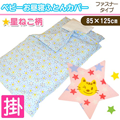 日本製 掛ふとんカバー ベビーサイズ 85×125cm ファスナータイプ 星ねこ柄/ピンク お昼寝布団カバー