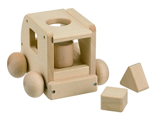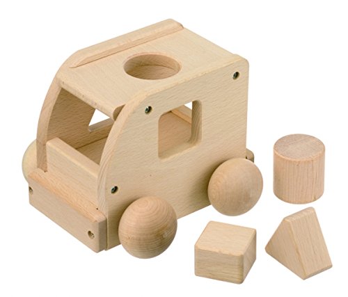 無着色・無塗装のブナ材を使い国内で製造した木のおもちゃです。 車を転がすとオルゴールのメロディー「ミッキーマウスマーチ」が流れます。 丸・三角・四角のブロックで形合わせ遊びもできます。