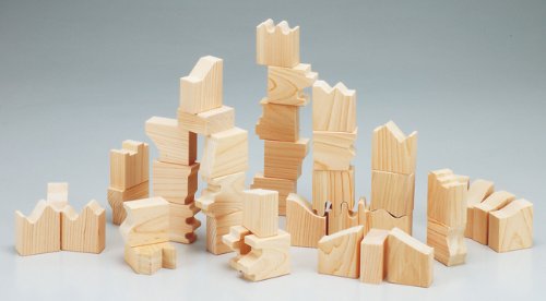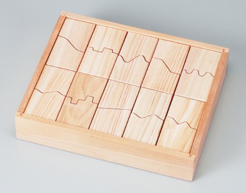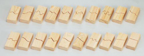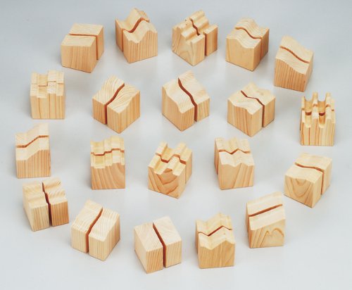 日本の工房で一つ一つ丁寧に製作されたおもちゃです。 20組の色々なかたちのブロック。 それぞれペアの木目もちゃんと合っています。 パズルや積木はもちろん、たくさんのあそびができます。