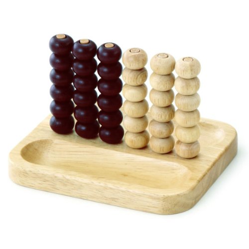 タイのPINTOYの2人対戦の木製戦略ゲームです。 白・黒の木製ビーズを交互にスティックにさしていきます。 縦・横・斜めのどこかに、自分のビーズを4つ揃えた方の勝ちです! 相手の邪魔をしながら、自分の色のビーズを並べる戦略が必要です。