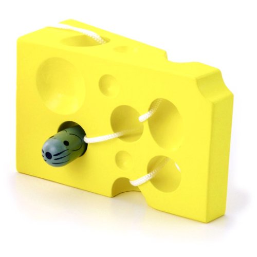 VIGA TOYのチーズとネズミがモチーフのかわいらしいデザインのひも通しです。 ネズミをチーズの穴へ通して遊びます。 ネズミを入れたり出したり、繰り返し遊ぶことで、指先の器用さを養います。
