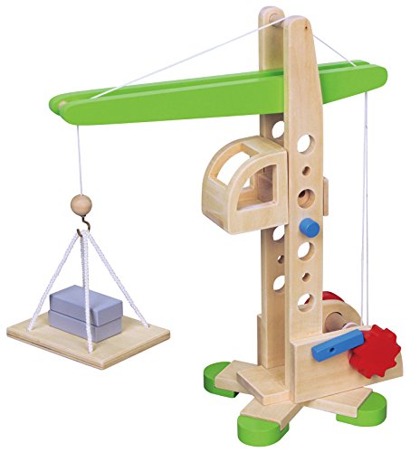 VIGA TOYの荷物をのせて上げ下げできる木製クレーンです。 クレーンは、荷物を上げ下げしたり、旋回したり、操縦室も上下に調整できます。