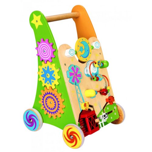 - 指先を使った遊びがいっぱいの木製ウォーカー(手押し車)です。