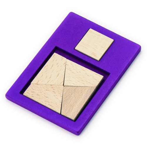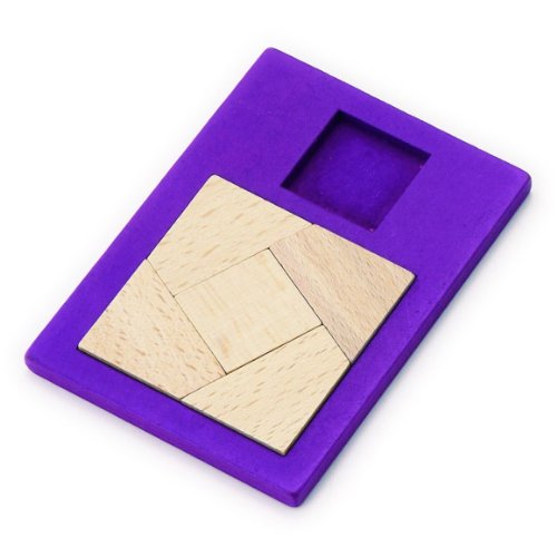 - 木製知育パズルです。ピースを1つ加えてフレームの図形を完成させます。
